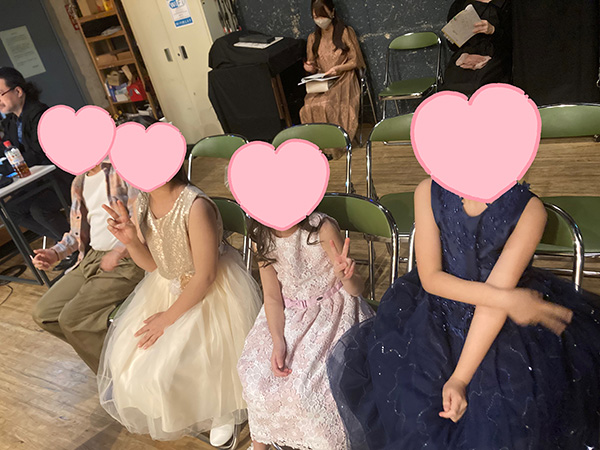 舞台裏では、緊張して固まっている子、お友達と小声でおしゃべりしている子、深呼吸をして緊張をほぐしている子など色々見受けられました。